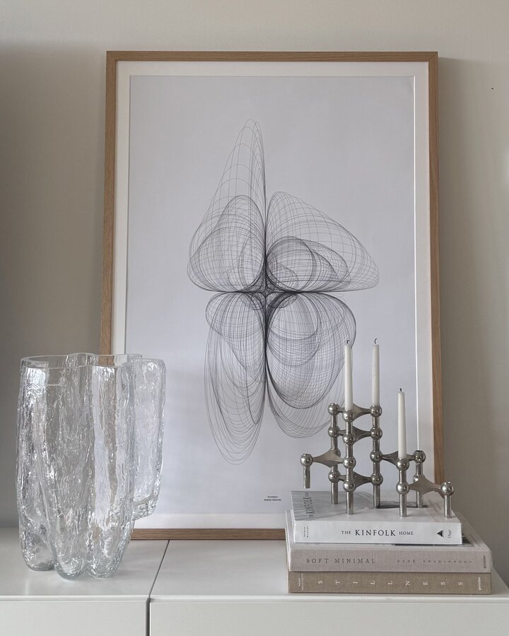 Kunstdruck, Wohnzimmer, Sideboard, Chrom, Stoffnagel, Kerzenhalter