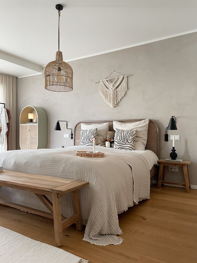 Schlafzimmer, Schlafzimmerinspo, Schlafzimmerdeko, Bohoschlafzimmer, Boho, Interior, Bettbank, Wienergeflecht