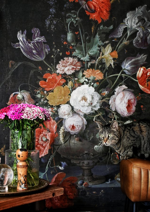 🥰 "Stillleben mit Blumen und einer Uhr" von Abraham Mignon, gemalt 1660-1679.