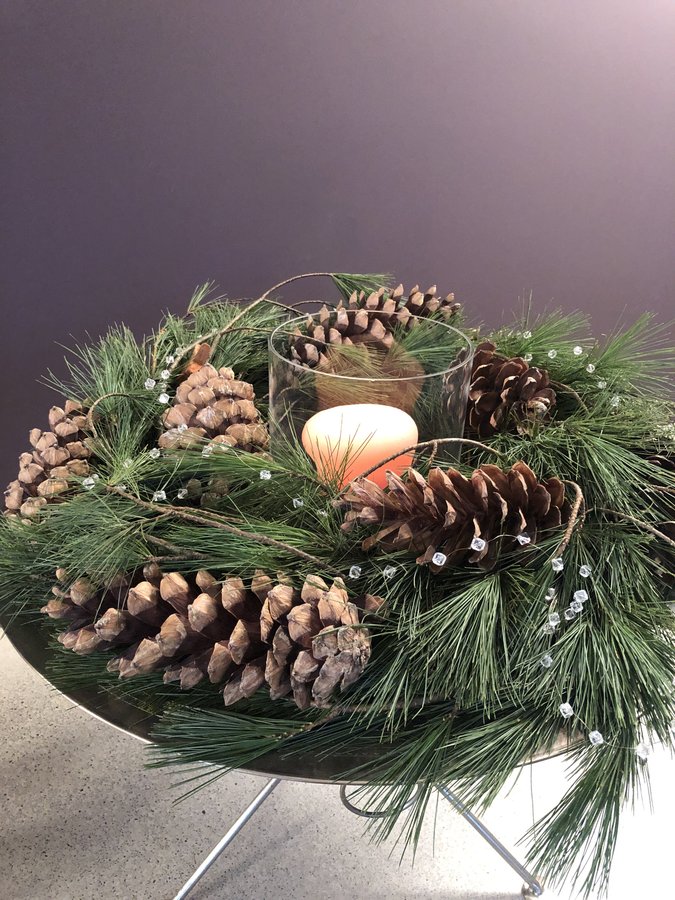Adventsdeko, Adventkranz, Tannenzapfen, Violett, licht, Kerze