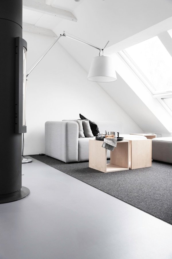 Wohnzimmer, Dachgeschoss, Sofa, Kamin, Leuchte