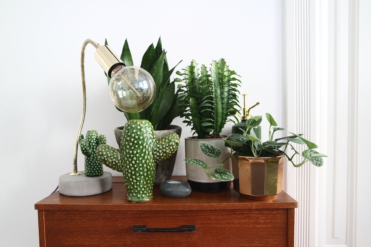 Urban Jungle, Kaktus, Kakteen, Grün, Messing, beton, Altbau, Teak