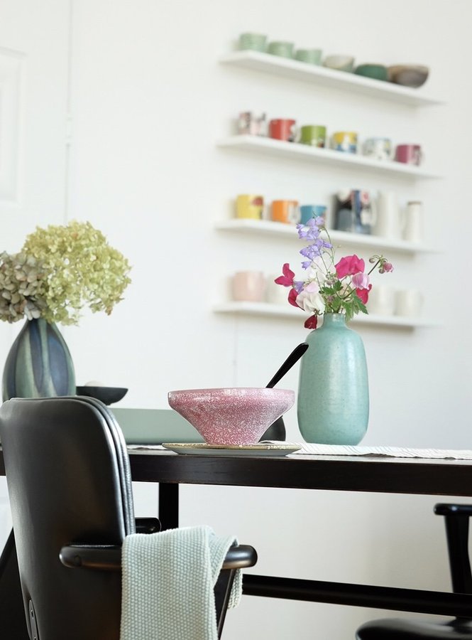 Ich bin unverbesserlicher Keramik-Suchtie und stöbere regelmäßig nach Vintage-Schätzen. Diese Schale von Töpferhof Römhild (vermutlich) ist mein neuester Schnapp und hat es mir daher gerade besonders angetan. Ich hätte sie ja gern noch in anderen Glasuren, also falls jemand so etwas los werden will, gerne melden 😊 Zur Abwechslung habe ich auch mal meine Moomintassen auf das Regal geräumt, mit ihnen begann vor ca 15 Jahren meine Keramiksammelleidenschaft und auch wenn schon lange keine Neue mehr hinzu gekommen ist, mag ich sie nach wie vor total gerne.