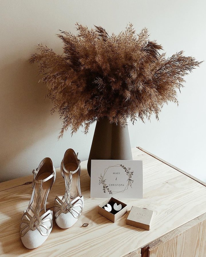 Trockenblumen, Ziergräser, Vase, Hochzeit