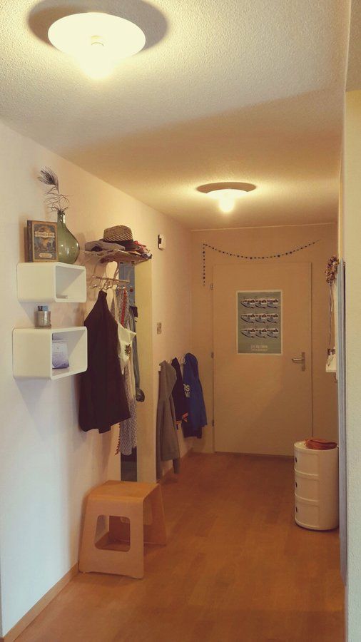Garderobe Impressionen Componibili Poster Schweden Filzbällchen Kindergarderobe DIY Ikeahocker weisse Interioregale Ballonflasche, Deckenleuchte