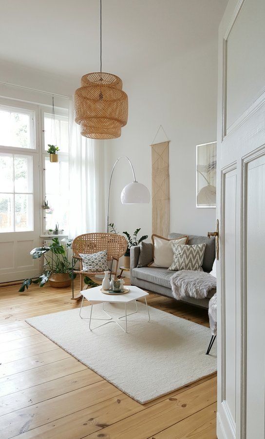 Wohnzimer, Sofa, Skandinavisch, Skandinavisches Design, Altbau, Fenster, Dielenboden, Holzboden, i, Weiß, Natural Basket, Korb, Monstera, Pflanzen, Natur
