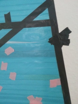 Da mir mein Birkebild auch so gut im Flur gefallen hat, wollte ich mir den gleichen Stoff- aber in der Frühlingsversion kaufen, der ist aber ausverkauft und nur noch als Tapetenpaneel für 250€ zu erwerben. Das war mir zu teuer und außerdem haben wir Raufaser, also habe ich losgetaped und mir gleich daraus eine Memowand gemacht