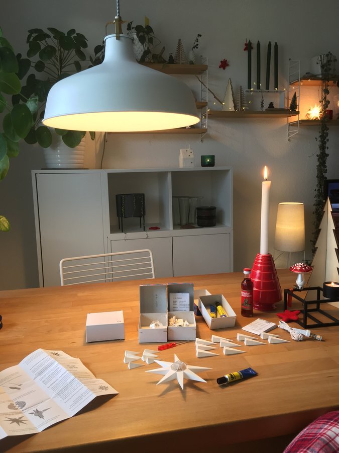 Ich klebe mir meine neuen Herrnhuter selbst zusammen.