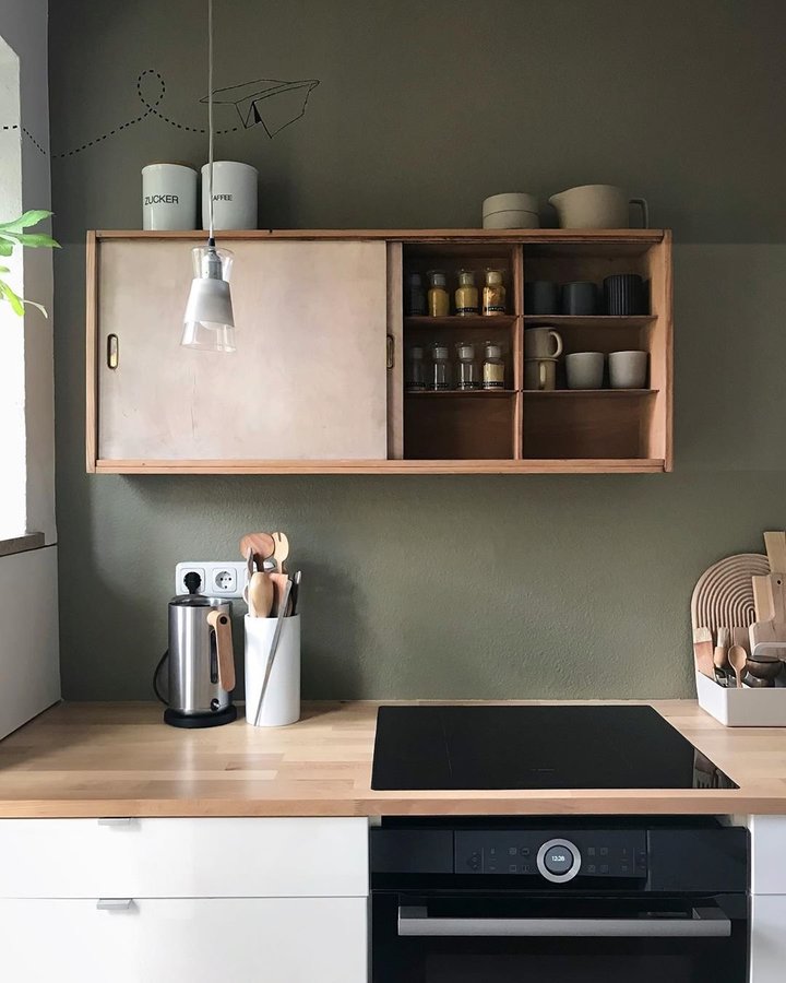 Küche, Wandfarbe, Grün, Sperrholz, Gewürzregal