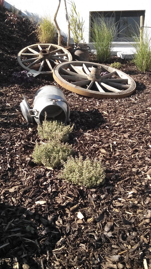 Garten, Milchkanne, Thymian