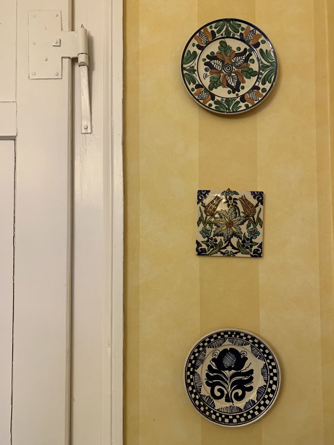 Am Wochenende hat es eine Freundin und mich durch einen Zufall nach Gundelsheim (Nähe Heilbronn) auf die Burg Horneck ins Siebenbürgische Museum verschlagen. Ein unglaublich interessantes Museum, das auch Teller verkauft, die von Senioren, die aus dieser Region stammen, gespendet wurden. Dort wurde ich zum Schluss fündig und habe als alte Keramikliebhaberin sofort drei Wandteller mit klassischen Mustern erworben. Zwei davon sind hier zu sehen. Sie passen wie angegossen zu der alten Kachel aus der Türkei. Ich freue mich über meinen neuen Blickfang im Esszimmer!