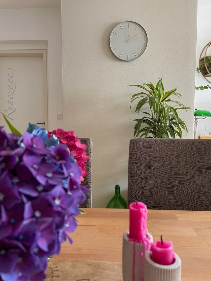 Auch an dieser Wand prangt nun warmes Grau namens „Windstille“ - einzig die Uhr ist halt jetzt ein bissl getarnt. Aber von der soll man sich ja eh nicht immer so viel diktieren lassen…. 😜😅