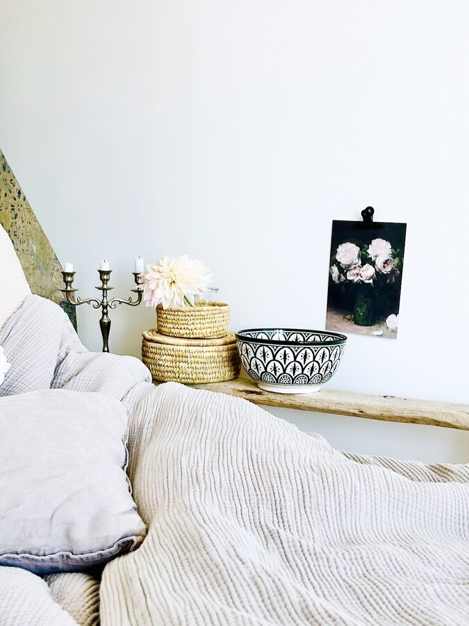 Auch im Schlafzimmer des alten Häuschens, dürfen Dahlien aus dem Garten alles noch ein bisschen hübscher machen. 🤍