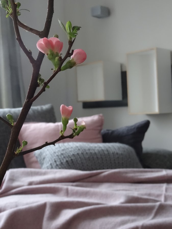 Lieblingszweig, die Zierquitte! Sieht sie doch auch nach einer Woche immer noch so frisch aus! Kuschligen Abend wünsch ich euch und einen guten Start ins Wochenende!