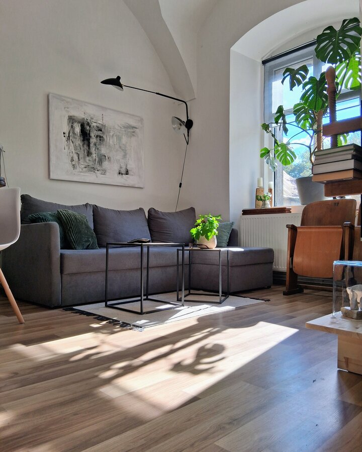 Altbau, Altbauwohnung, Altbauliebe, Wohnbereich, Gewölbe, Fenster, Kleine Wohnung, licht, Ecksofa