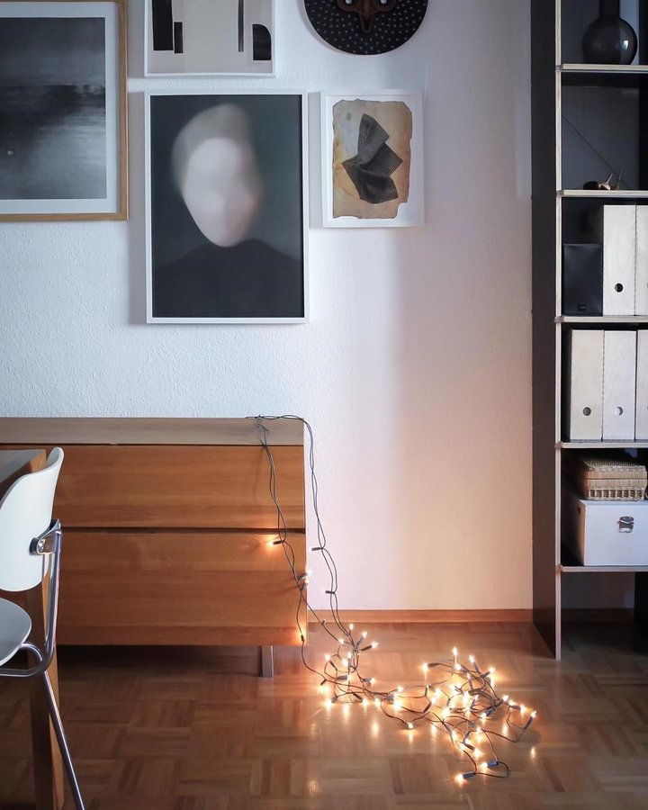 Esszimmer, Wohnzimmer, Bücherregal, Bilderwand, Sideboard, Kommode, Weihnachten, Lichterkette