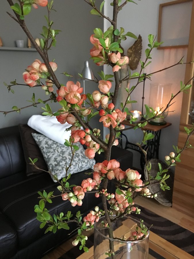 Bei dem trüben Regenwetter muss etwas blühendes in die Vase, ich liebe die Zierquitte.