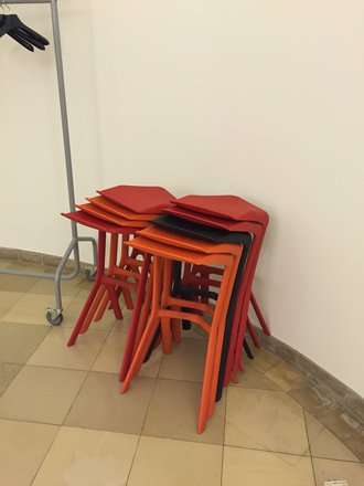 Bei mir im Büro in der Aula stehen diese alte Schulbänke