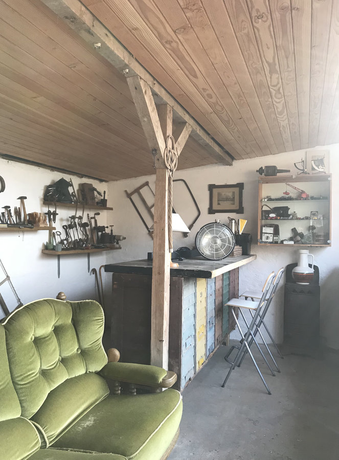 Bei uns kommt selten etwas weg - nun hat der Mann sein „Museum“ eingerichtet. Aus alten Bienenkästen einen Tresen gebaut und das ganze Sammelsurium dekoriert….