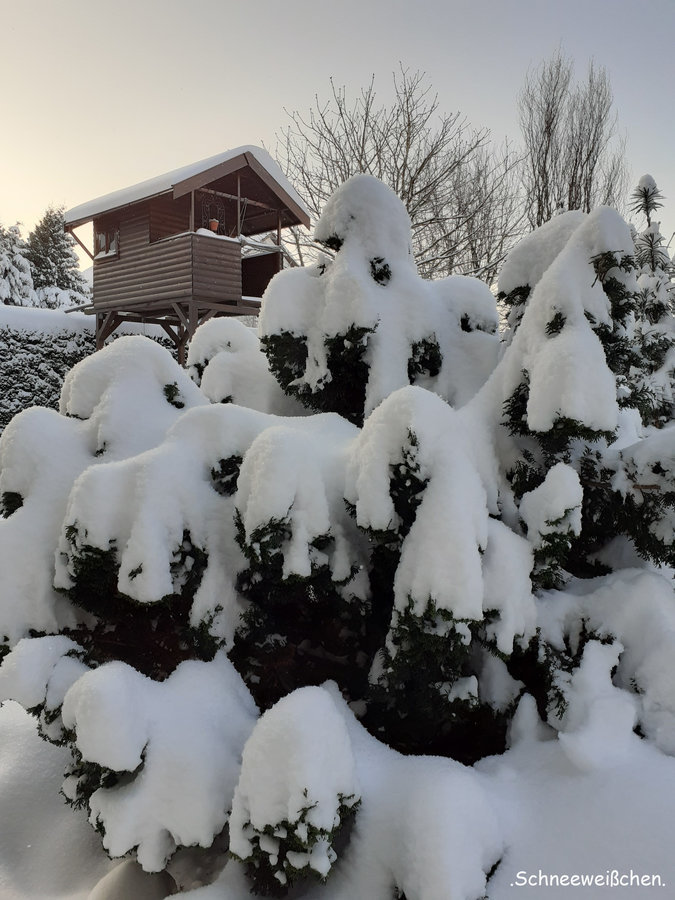 Schnee, Garten, Winter, Stelzenhaus, Baumhaus, Muschelzypresse