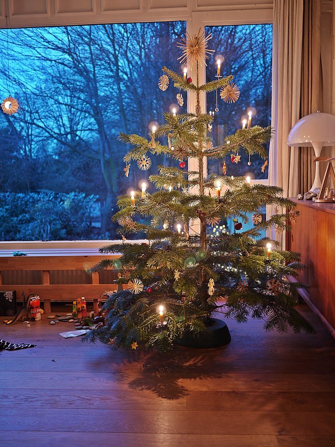 Alles ist ruhig. Kurz vor der Morgendämmerung wird der Baum entzündet und strahlt in den erwachenden Tag. Frohe Weihnachten!