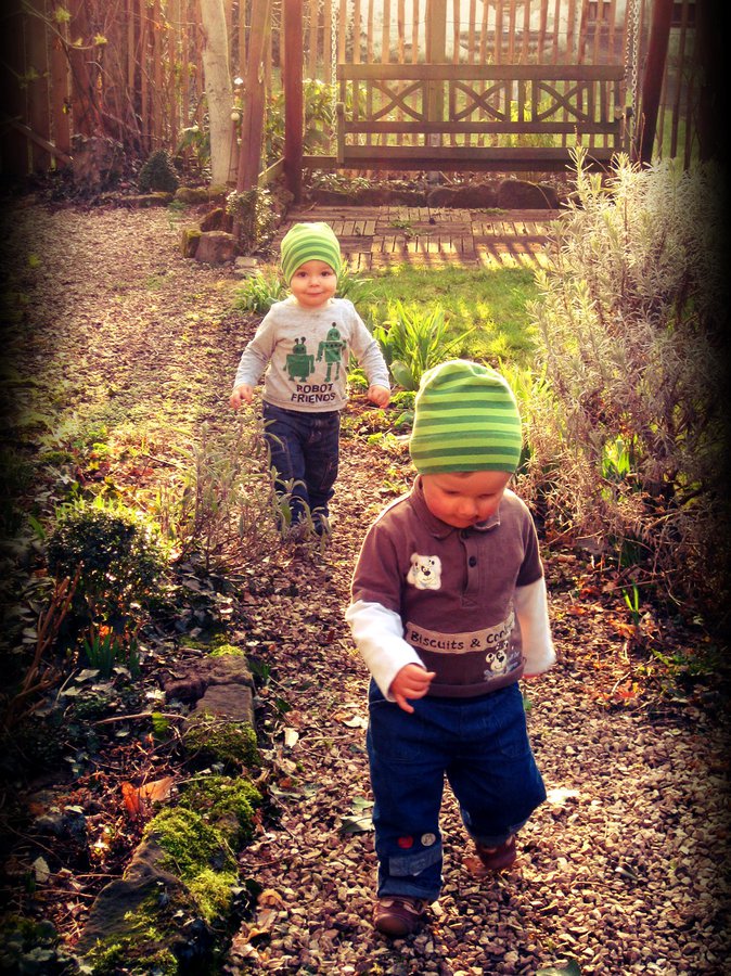 Die beiden Mützen-Jungs (zufällig die gleiche) im schönen Garten von faultierchen!