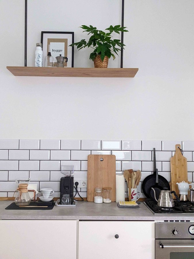 Küche, Metrofliesen, Kaffee