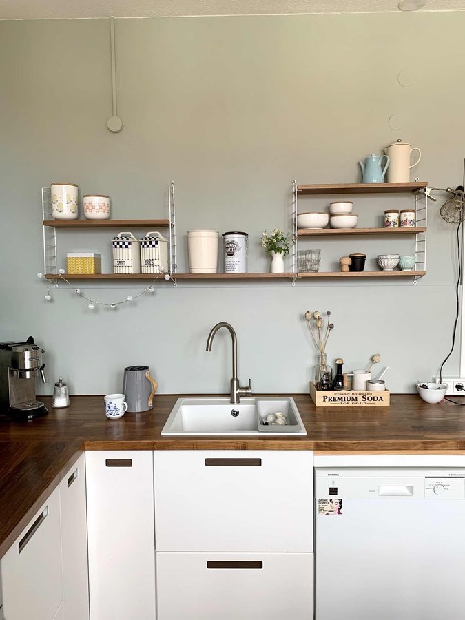 Küchen-Make-Over abgeschlossen. Ich liebe die neue graugrüne Farbe. Sie bringt eine solche Ruhe in unsere kleine Küche. Hach, große Küchenliebe hier 😍