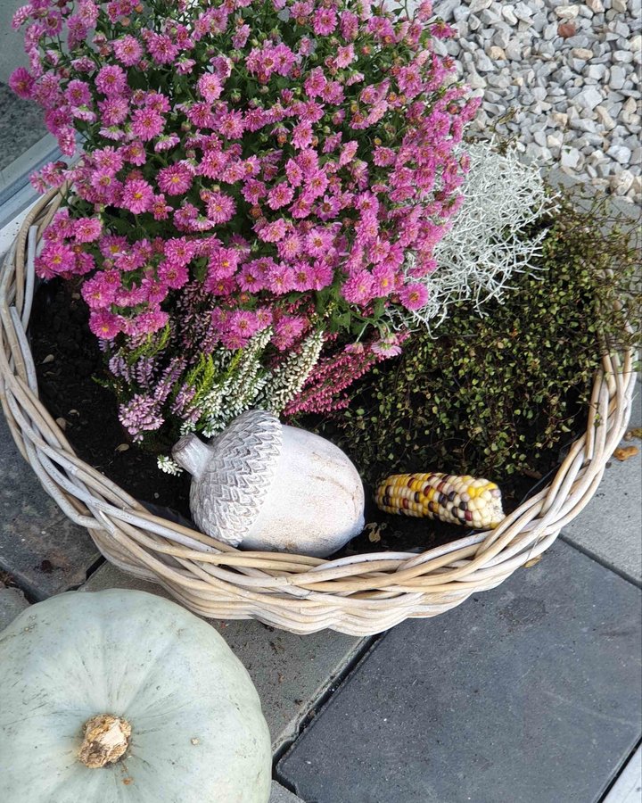 Pflanzkorb, Rattan, Herbstdeko, Heide