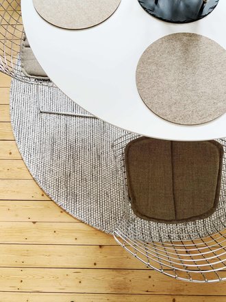 Zwischen Weihnachten und Neujahr habe ich, zusammen mit meiner Mutter, Sitzkissen für die Bertoia Chairs genäht. Ich wollte unbedingt beigefarbene Sitzkissen, weil das gerade meine Farbe ist. Mit dem Ergebnis bin ich absolut glücklich.