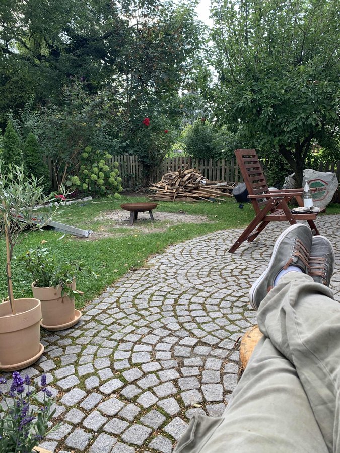 Man muss auch mal in der Baustellenzeit entspannen. Heute kamen unsere Sitzpolster an und ich genieße mal die Zeit und atme einfach durch. Der Garten nimmt auch etwas Gestalt an und sieht beinahe schon gemütlich aus