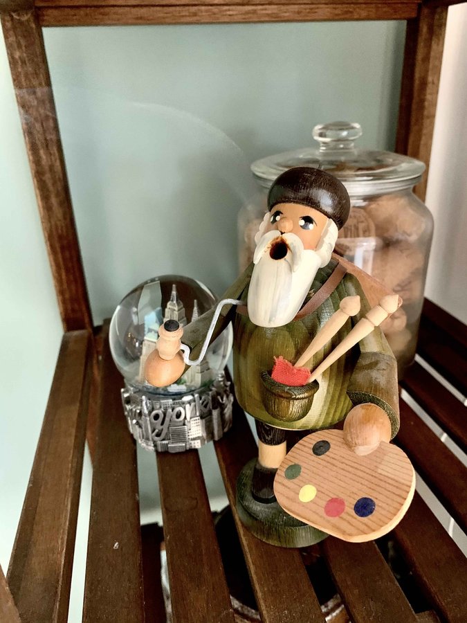Ich liebe Räuchermännchen! Diesen hab ich mal gebraucht und restauriert auf einem kleinen Weihnachtsmarkt gekauft, weil er wie ich ein kleiner Künstler ist😊👩🏻🎨