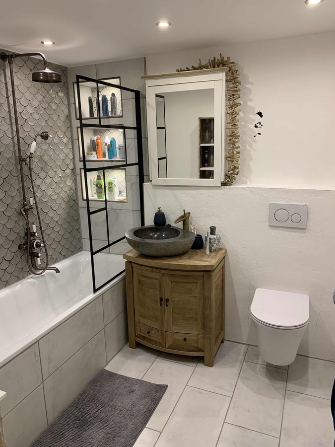 Endlich ist es soweit und das Badezimmer kann voll genutzt werden. Das einzige was noch fehlt ist die Tür, aber die wird auch die Tage angebracht. Endlich baden und die grauen Abende entspannt ausklingen lassen