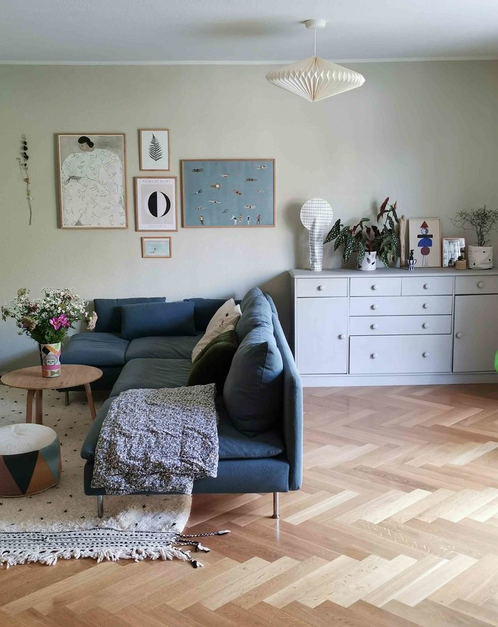 Livingroom, Wohnzimmer, Blumen, Blau, Grün, Wohnzimmerdeko, Wohnbereich, Teppich, Dekoideen, Pflanzen