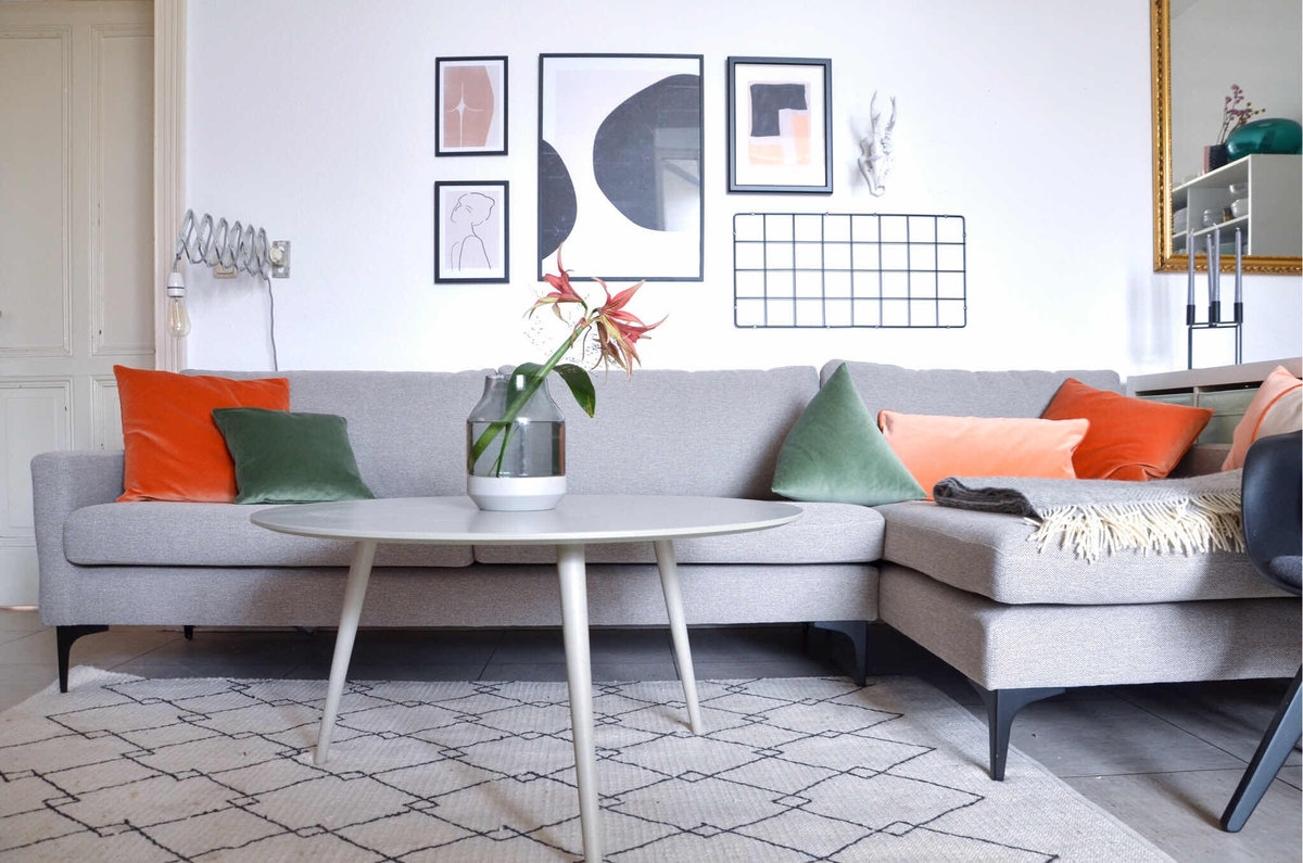 Wohnzimmer, Ecksofa, Couchtisch, Vase, Muuto, Boconcept, SofaCompany, Kissen, Illustrationen