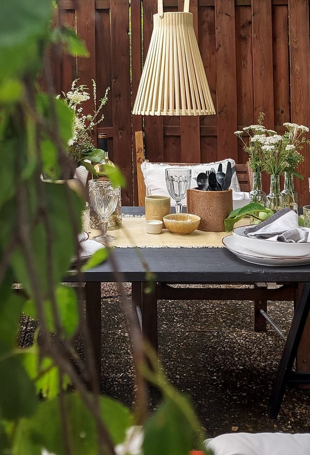 Sommerzeit, Tischdeko, Draussenessen, Gartenplatz, Blumendeko