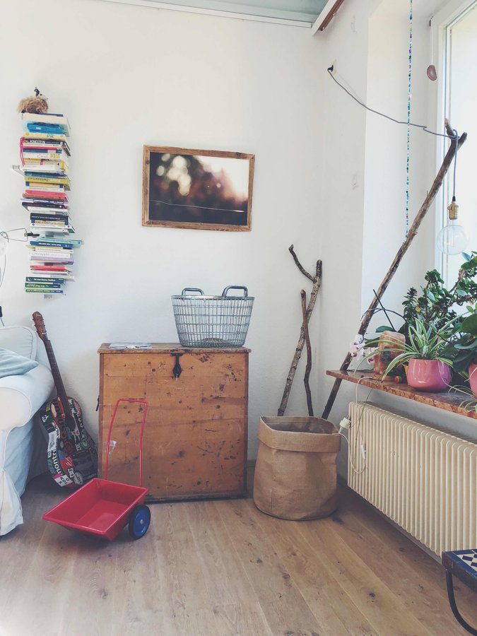 Wohnzimmer, Flohmarktfund, Pflanzen, Bücherregal