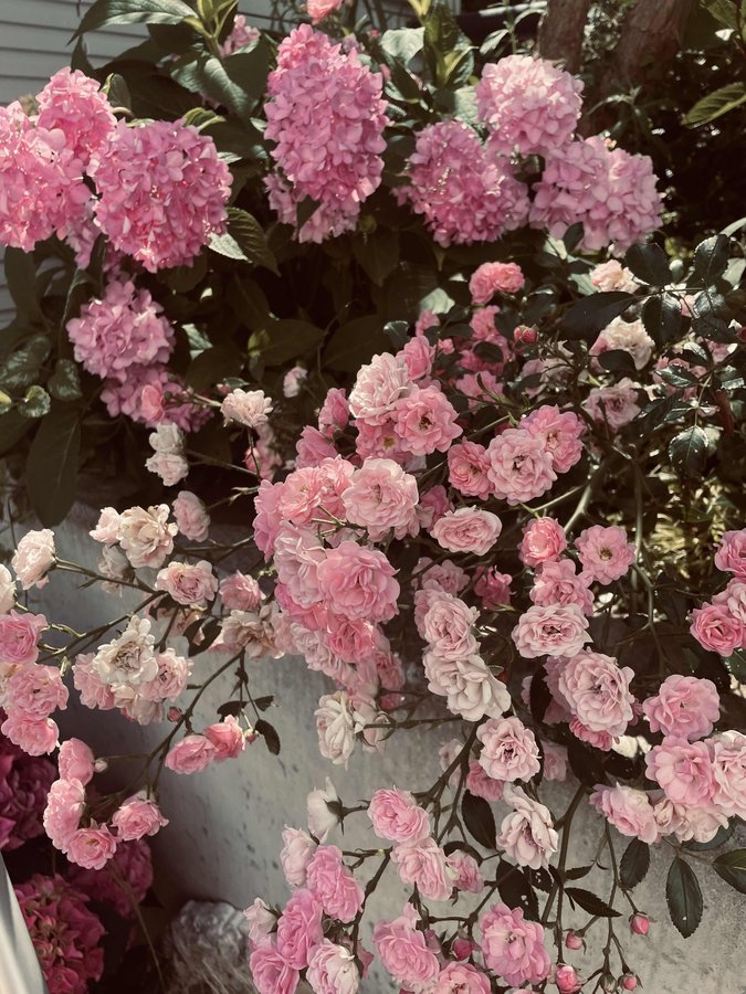 Rosa, Pink, Bauernhortensie, Rosen, Gartengestaltung