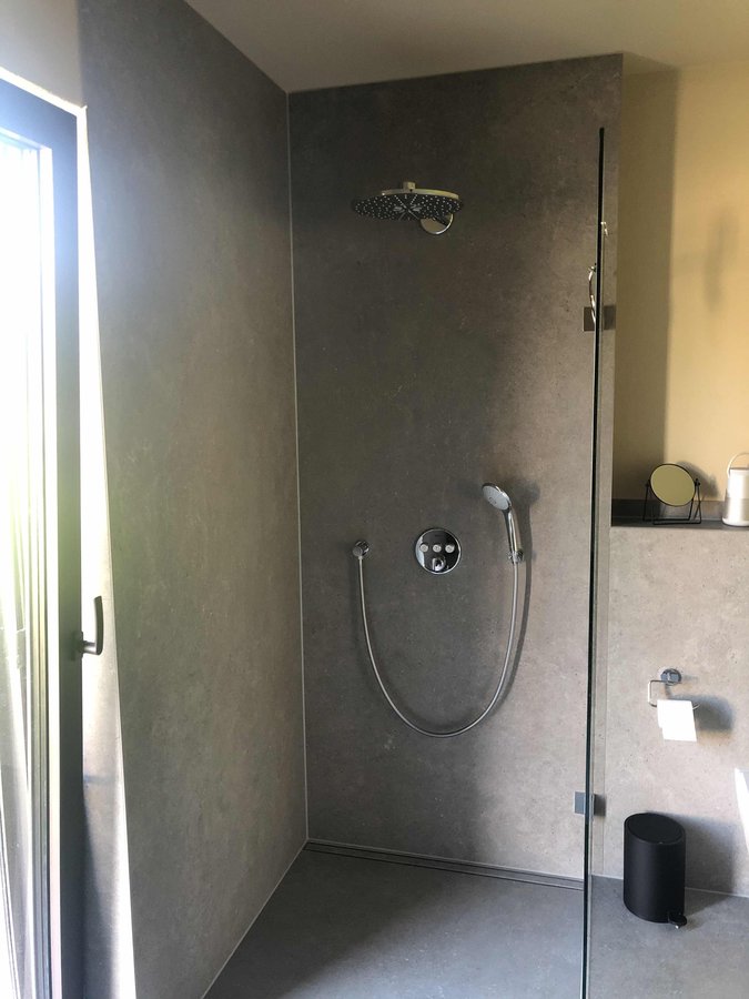 Die Dusche ist mein absolutes Highlight! Alles aus einer Fliese! Unser Fliesenleger hat alles gegeben! Einfach wunderschön und noch pflegeleicht!