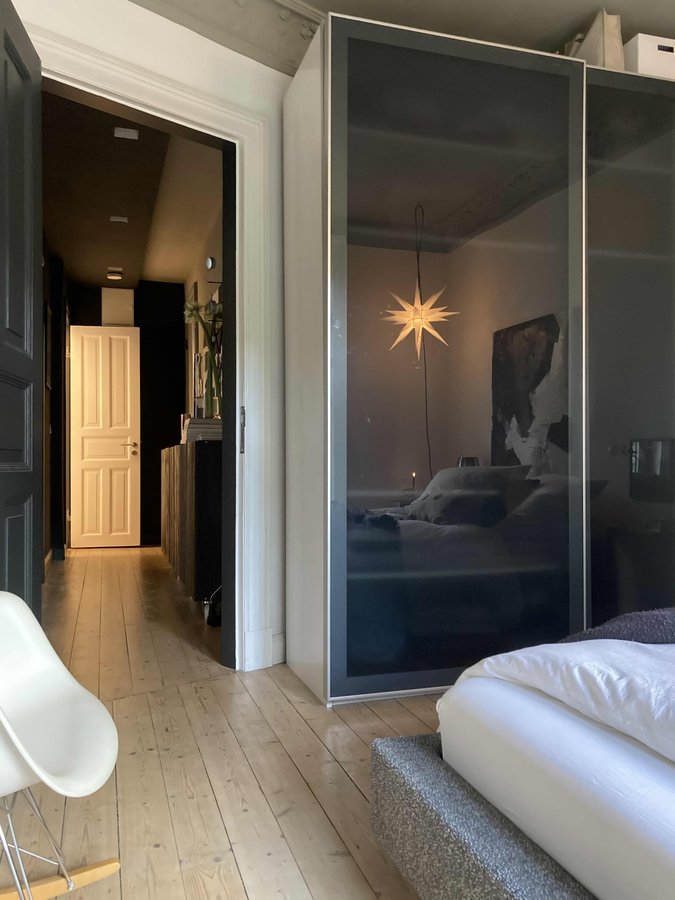 Schlafzimmer, Flur, Schwarz, Altbau, Holzdielen, Kleiderschrank
