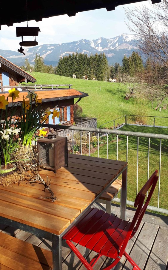 Balkon, Berge, Kühe