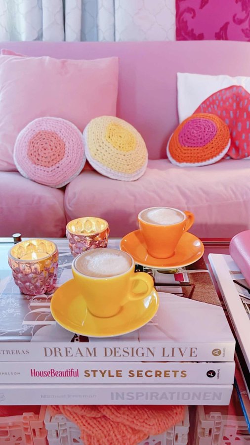 Sofa, Couchtisch, Sofakissen, Farbenfroh, Espressotassen, Rosa
