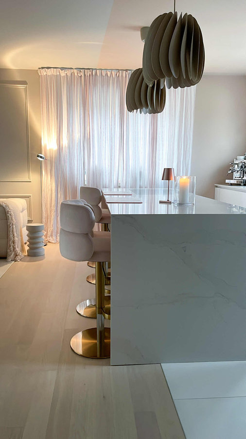Kochinsel, Küche, Keramik, Barhocker, licht, occhio