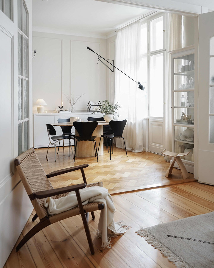 Wohnbereich, Livingroom, Living, Vitra, Esstisch, Travertin, Carl hansen, Fritz Hansen, licht, Altbau, Altbauliebe