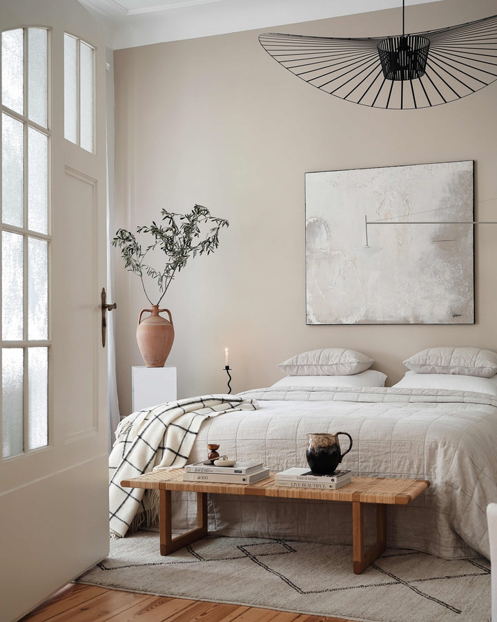 Schlafzimmer, Kunst, Bank, Olivenzweig, bedroom, light, Lampen