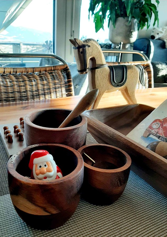 Santa claus, Weihnachtsmann, Holzbecher, Schaukelpferd, Advent, Dezember