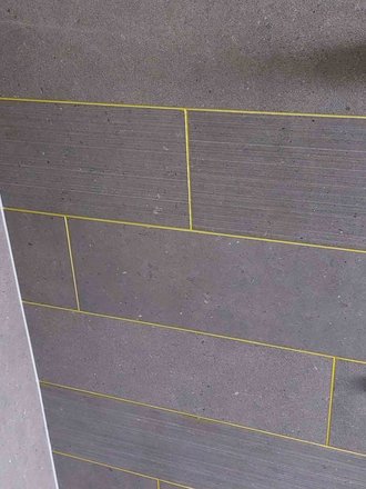 Endlich graue Fugen und das Bad betrachte ich nun als fertig! Der Fliesenleger hat gestern die vormals güldenen Fugen hinter dem Waschtisch grau überstrichen. Es sieht so einfach harmonischer aus.