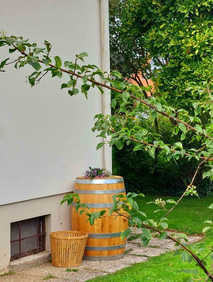 Ein Regenfass steht nun in unserem Garten🫶