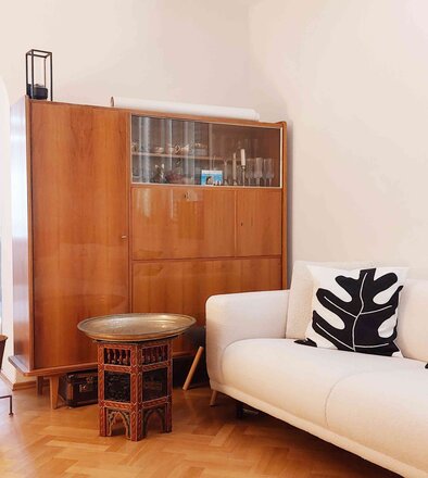 Altbau, Renovierung, Lehnstuhl, Kommode, Midcentury, Vintage, Eichenparkett, Holzboden, Auenland