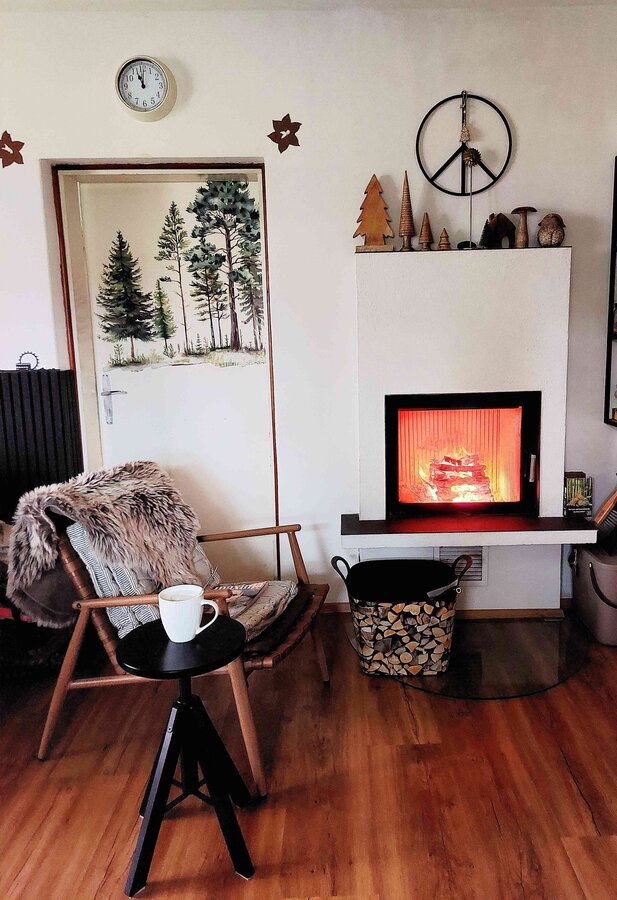 Heut hab ich um 6 den Kamin angefeuert und gemütlich meinen Morgenkaffee vorm warmen Feuer genossen. Sollte ich öfter machen🤔
